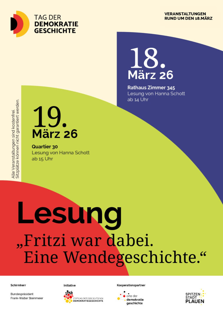 Plauen braucht einen attraktiven Ort der Information und Erinnerung an die Ereignisse der Friedlichen Revolution. Deshalb setzen wir uns ein für ein Informations- und Dokumentationszentrum Plauen 1989 (IDZ-Plauen89).